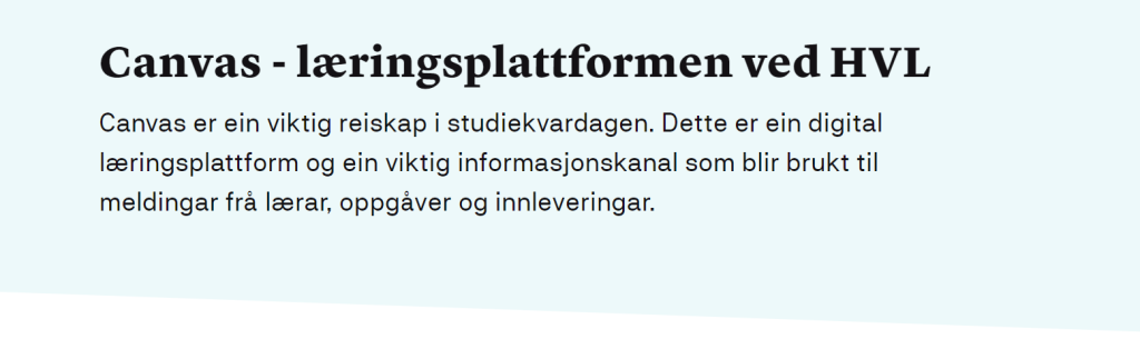 - Utforsk HVLs Canvas-plattform: Klar for en oppgradering i din akademiske reise? Klikk på den blå knappen nedenfor for å dykke inn i et hav av muligheter som Canvas ved HVL tilbyr. Gå ikke glipp av sjansen til å utvide din horisont!